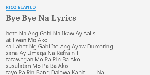 00000Bye bye na aalis ka na. Listen to Bye Bye Na by Rico Blanco 1539 Shazams featuring on OPM Diva Hits Essentials and Rico Blanco Essentials Apple Music playlists. CM7 Am Dm G CM7 Am Dm G Heto na ang gabi na ikaw ay aalis at iiwan mo ako CM7 Am Dm G CM7 Am Dm G Sa lahat ng gabi to ang ayaw dumating sana ay umaga na Refrain.